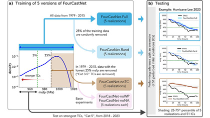 New research finds that artificial intelligence weather models do not extrapolate to extreme "gray swan" events that they haven't seen in training.