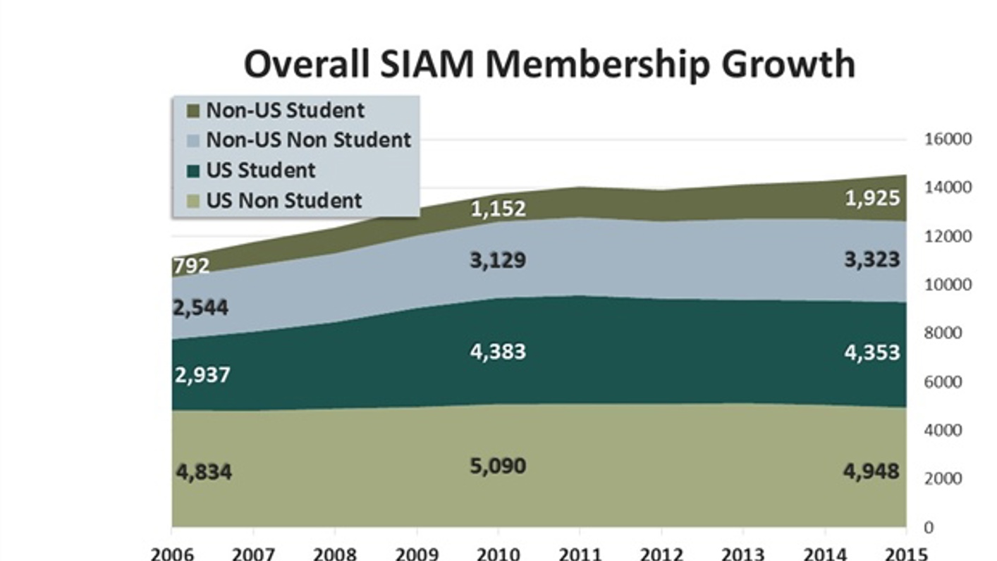 As of December 31, 2015, SIAM had 14,549 members from countries. Thirty-four percent (34%) of SIAM members reside outside the United States. The charts on this page show information about SIAM members.