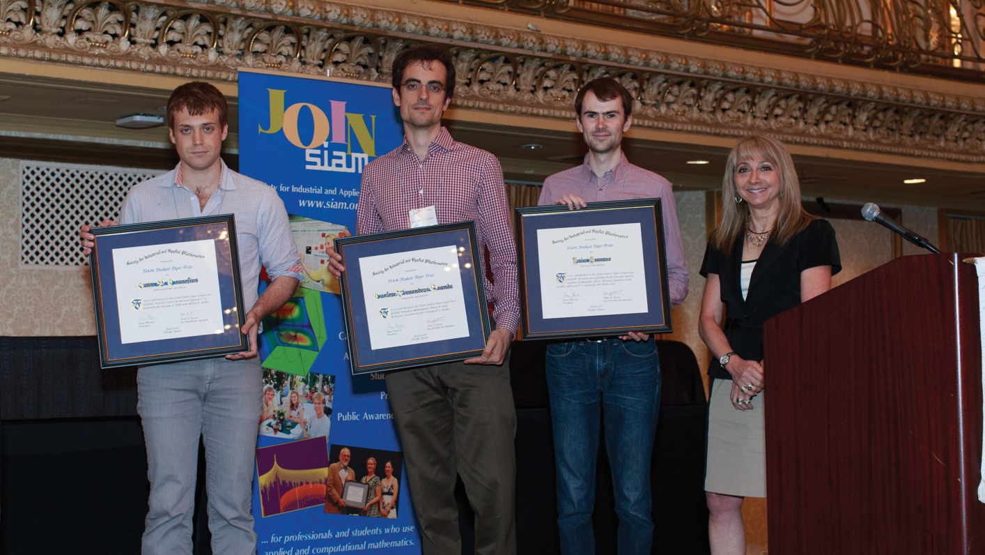 At SIAM News, we can’t think of a better setting than the “post-Annual Meeting” issue to draw readers’ attention to the new prize. As shown in photos throughout this issue, the 2014 SIAM Annual Meeting, held in Chicago, July 7–11, offered abundant examples of outstanding communication in many forms––from the I.E. Block Community Lecture to the 2014 John von Neumann Lecture, and from the “poster blitz” to talks given by recipients of best-paper prizes.