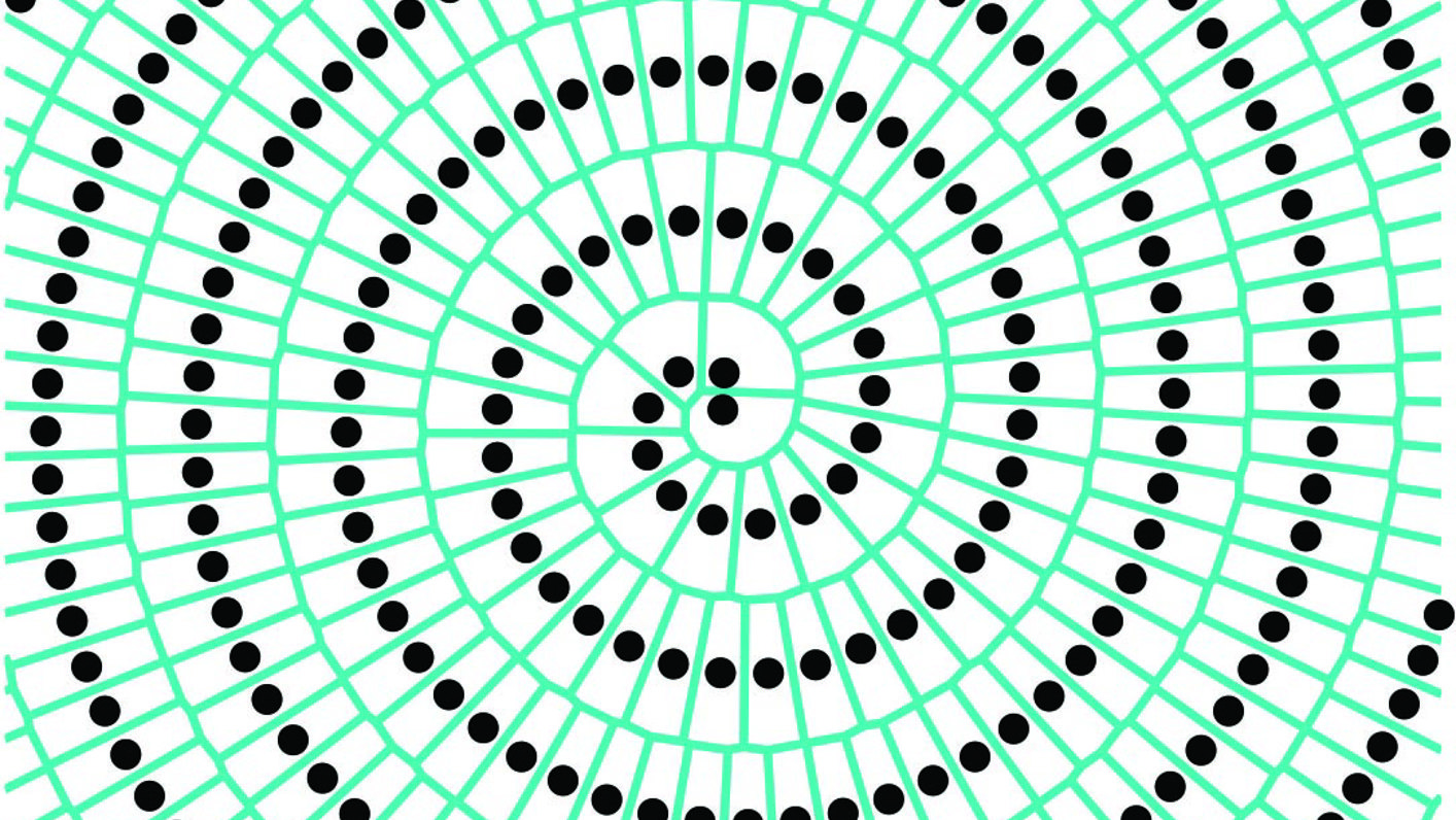 It is well known [1] that the configuration of points \(P\) that minimizes this (for large \(n\)) is a hexagonal lattice, which geographers call the “honeycomb heuristic,” as shown in Figure 1a.