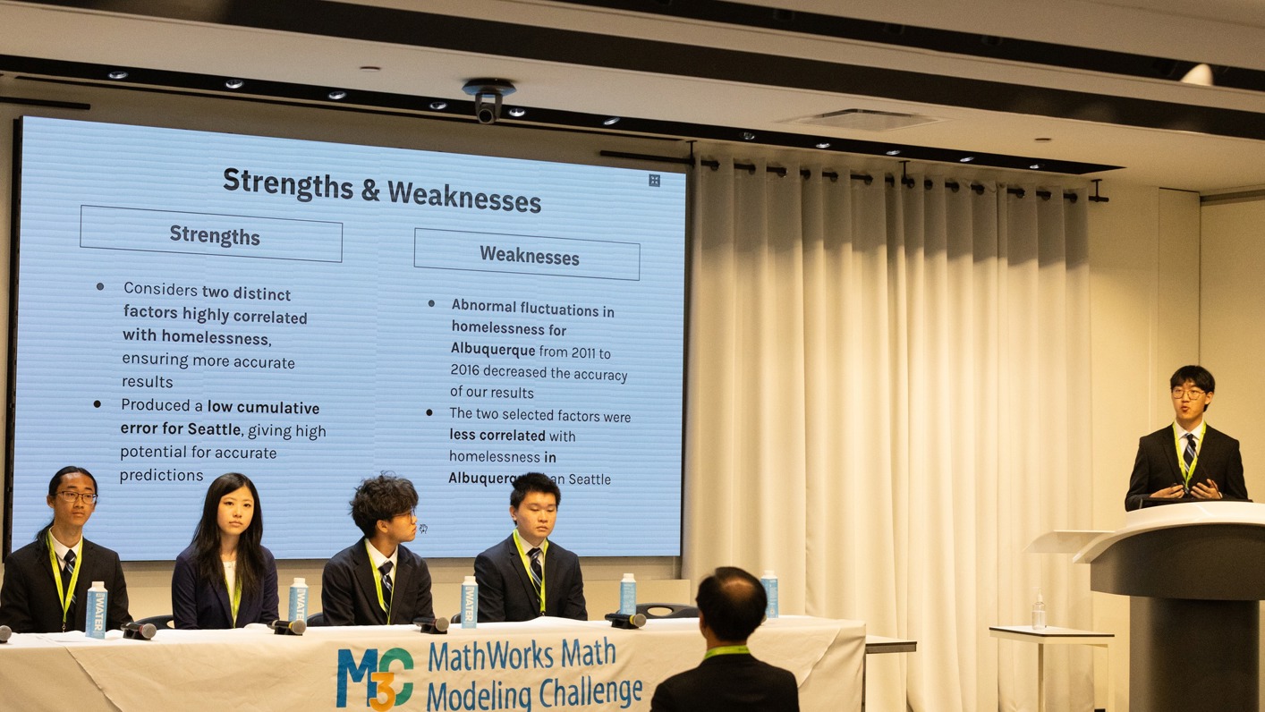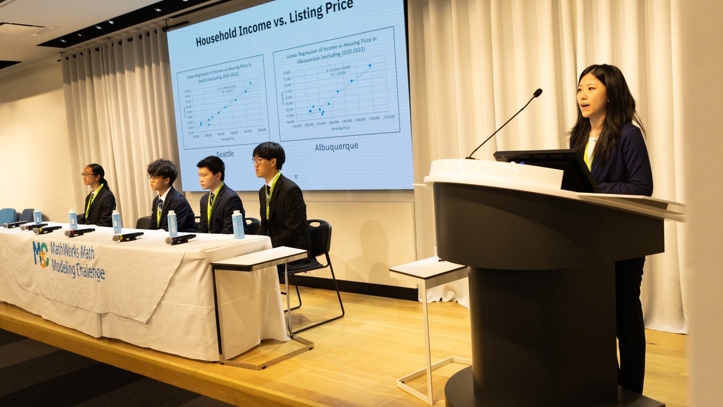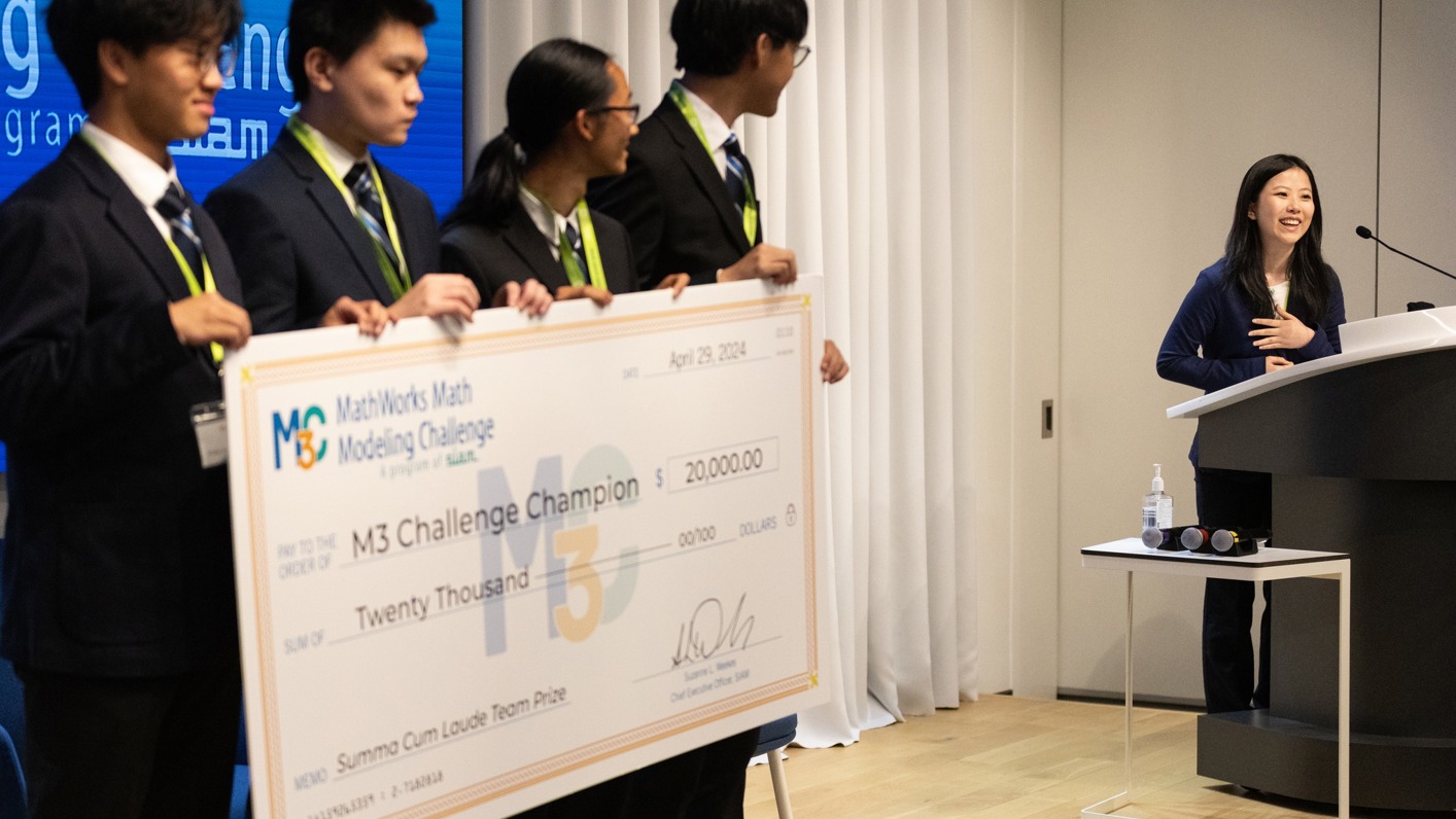The intertwined nature of the housing and homelessness crises made them a relevant subject for this year’s MathWorks Math Modeling Challenge (M3 Challenge), a program of SIAM with MathWorks as its title sponsor. Now in its 19th year, this annual online mathematics competition is open to U.S. high school juniors and seniors as well as sixth form students in England and Wales. Participating teams of three to five students have 14 consecutive hours during Challenge Weekend to address an open-ended mathematical modeling problem and write a report that explains and validates their solutions. All submitted papers then undergo three rigorous rounds of blind judging by an international panel of 120 Ph.D.-level applied mathematicians, who select the finalists. In late April, the nine finalist teams for M3 Challenge 2024 traveled to New York City and defended their solutions in front of a live panel of judges at Jane Street—a quantitative trading firm—to compete for more than $100,000 in scholarship funds.