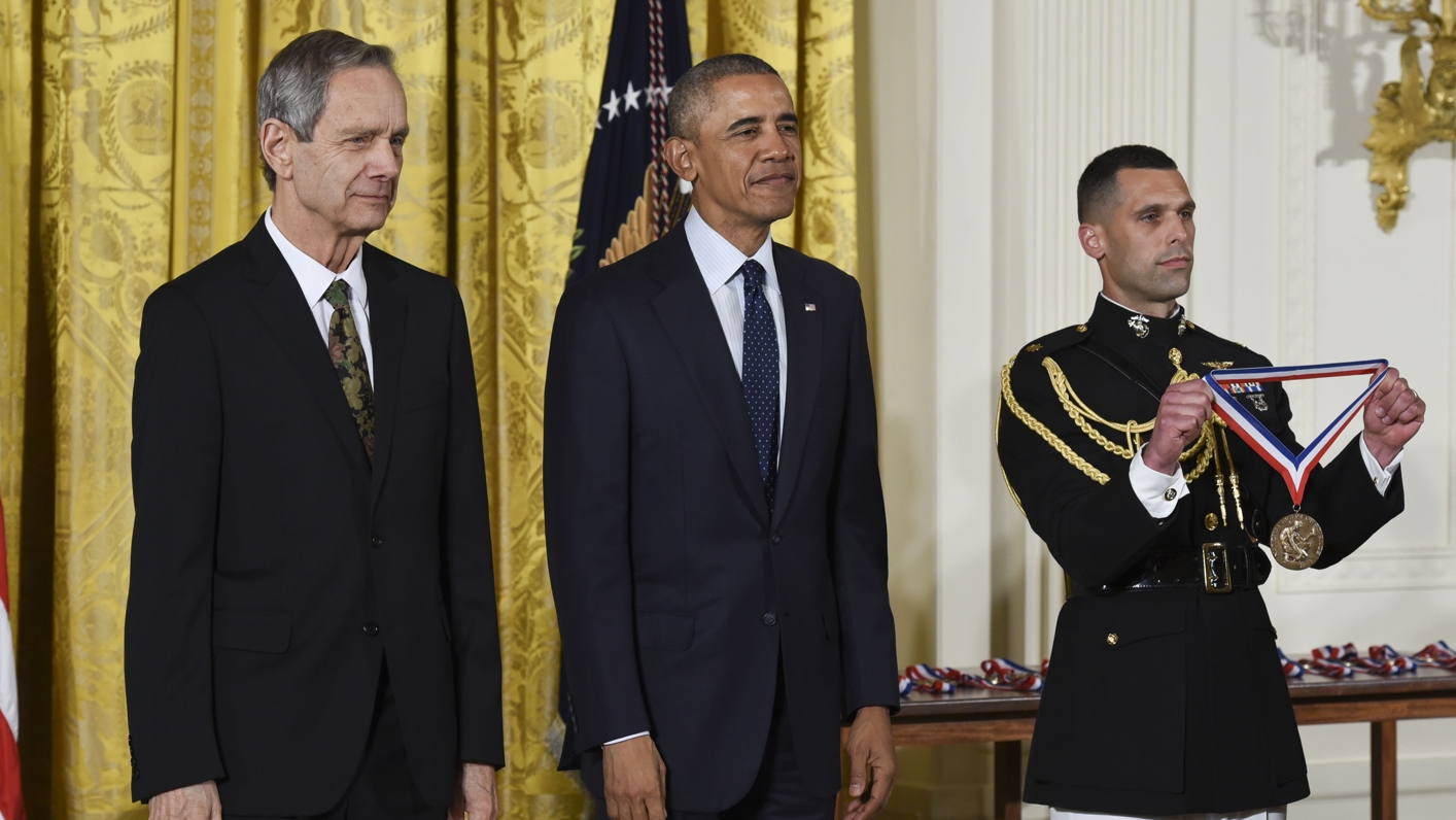 SIAM Fellows Simon Levin and Michael Artin were among nine renowned researchers and scientists awarded the 2015 National Medal of Science by President Barack Obama during a White House ceremony on May 19th. Levin, the George M. Moffett Professor of Biology at Princeton University, was honored for his work in environmental science and ecological complexity, while Artin, a professor emeritus at the Massachusetts Institute of Technology, received the medal for his accomplishments in modern algebraic geometry. The National Medal of Science is presented annually to those exhibiting both leadership and remarkable contributions to the fields of science and engineering. It is the highest award for scientific achievement in the United States. For a more detailed article, see the May issue of SIAM News.