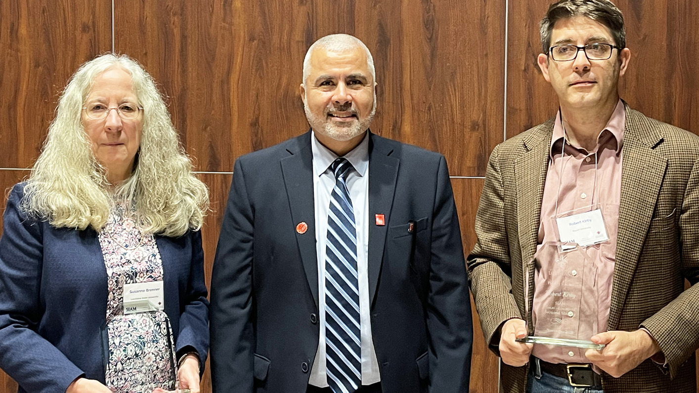 The four plenary lecturers shared novel research in a variety of fields. Susanne Brenner (Louisiana State University) and Maxim Olshanskii (University of Houston) addressed finite element methods in two different contexts: for problems with rough coefficients and for the solution of partial differential equations (PDEs) on surfaces. Marta D’Elia (Pasteur Labs) discussed scientific machine learning in industrial pipelines, and Robert Kirby (Baylor University) spoke about high-level software for numerical PDEs.