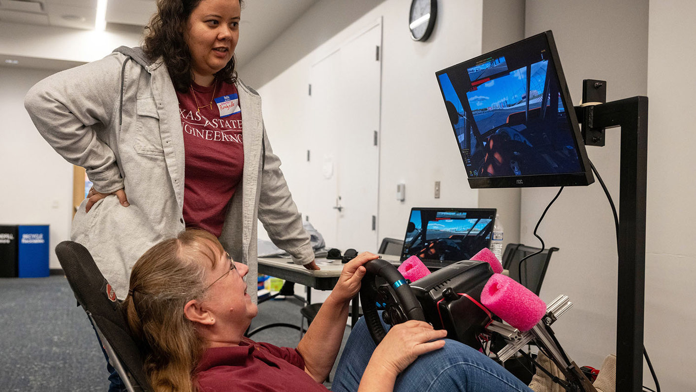 The San Marcos Public Library buzzed with energy as participants explored a wide array of activities. Favorites like “Skyscrapers” and “Cup Stacking” offered hands-on fun, while “Four Color Challenge” and “Sprigs” (hosted by the Texas State University Math Club) encouraged creative problem solving. The SIAM student chapter had its own table that featured the “Magic Flowers” puzzle and a “Map Coloring” challenge. Bobcat Racing, a Texas State student engineering team, added to the excitement with a racecar simulator.