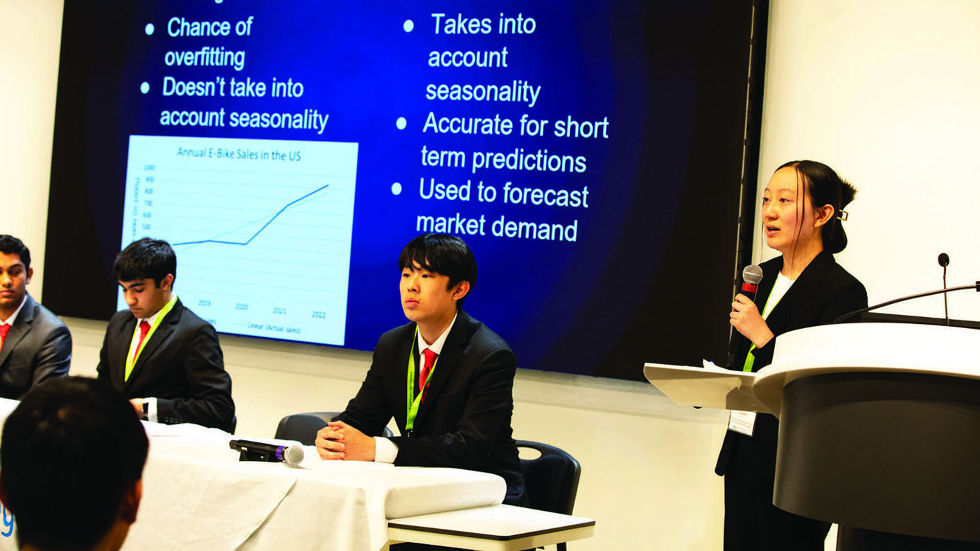 Members of the first-place team from Thomas Jefferson High School for Science and Technology in Alexandria, Va., were excited by this year’s problem topic. “I’ve used e-bikes before, but I didn’t think much of them until I saw their utility through this competition,” Rishabh Chhabra said. “When I was younger, one of my neighborhood friends had an electric bike and I got to try it a few times. What I didn’t realize, though, is how useful e-bikes can be for long-distance travel or commutes to work.” In addition to Chhabra, the Thomas Jefferson team consisted of Om Gole, Rishabh Prabhu, Jerry Sheng, and Laura Zhang.