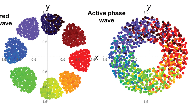 Researchers developed a simple math model for simultaneous spatially-coordinated and synchronous behavior.